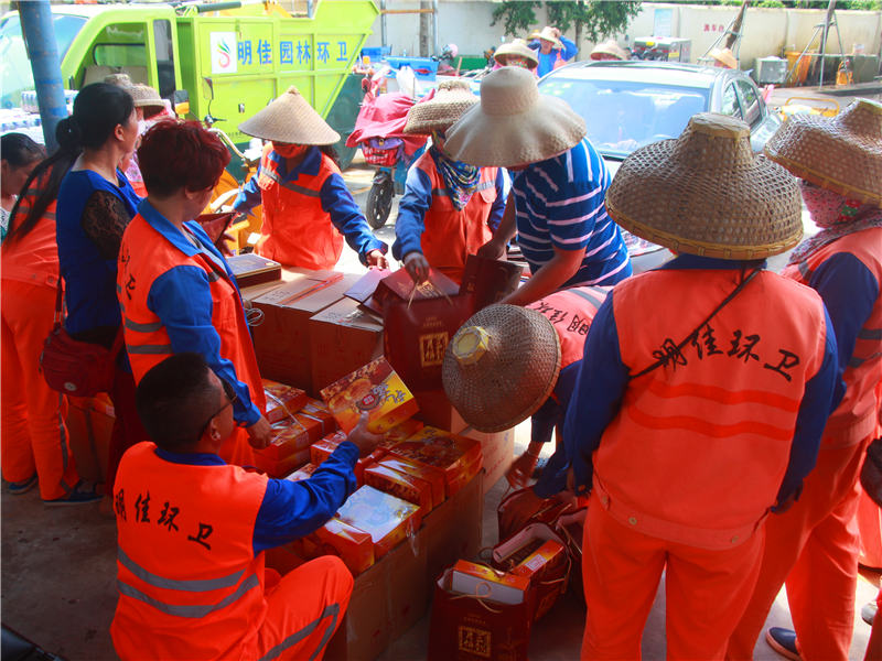 為所有員工繳納五險,發(fā)放節(jié)假日福利、環(huán)衛(wèi)節(jié)福利、降溫降暑物品等。