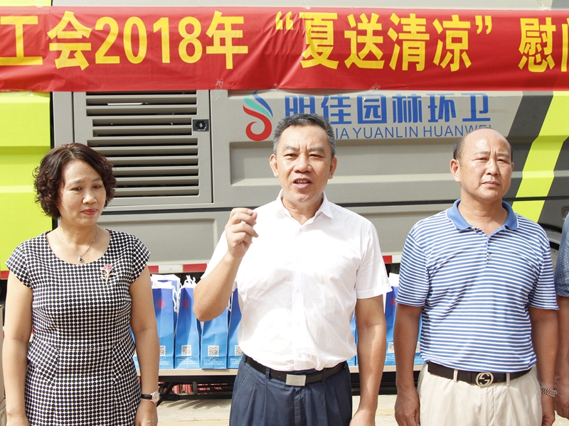 “你們辛苦了!感謝你們?yōu)槿齺喪忻、游客?chuàng)造了一個干凈整潔的人居環(huán)境,為三亞市“創(chuàng)文鞏衛(wèi)”工作作出的突出貢獻。”。張羽飛代表三亞市總工會向集團公司全體職工致以親切的慰問。他指出,環(huán)衛(wèi)工人頭頂列日,揮灑汗水,以“寧愿一人臟,換來萬家凈”的精神,為靚扮鹿城、建設國際化熱帶濱海旅游精品城市提供衛(wèi)生保障。他勉勵大家繼續(xù)發(fā)揚三亞環(huán)衛(wèi)人的精神,勇當尖兵的決心,提高環(huán)衛(wèi)作業(yè)質(zhì)量,在三亞市社會文明大行動和新一輪“創(chuàng)文鞏衛(wèi)”工作中作出新的更大貢獻。