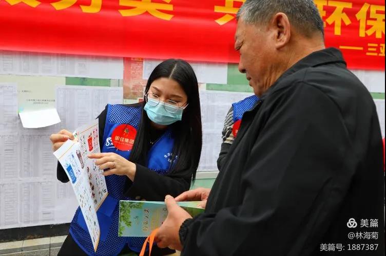 現(xiàn)場(chǎng)分發(fā)垃圾分類(lèi)指引圖冊(cè)、面對(duì)面講解