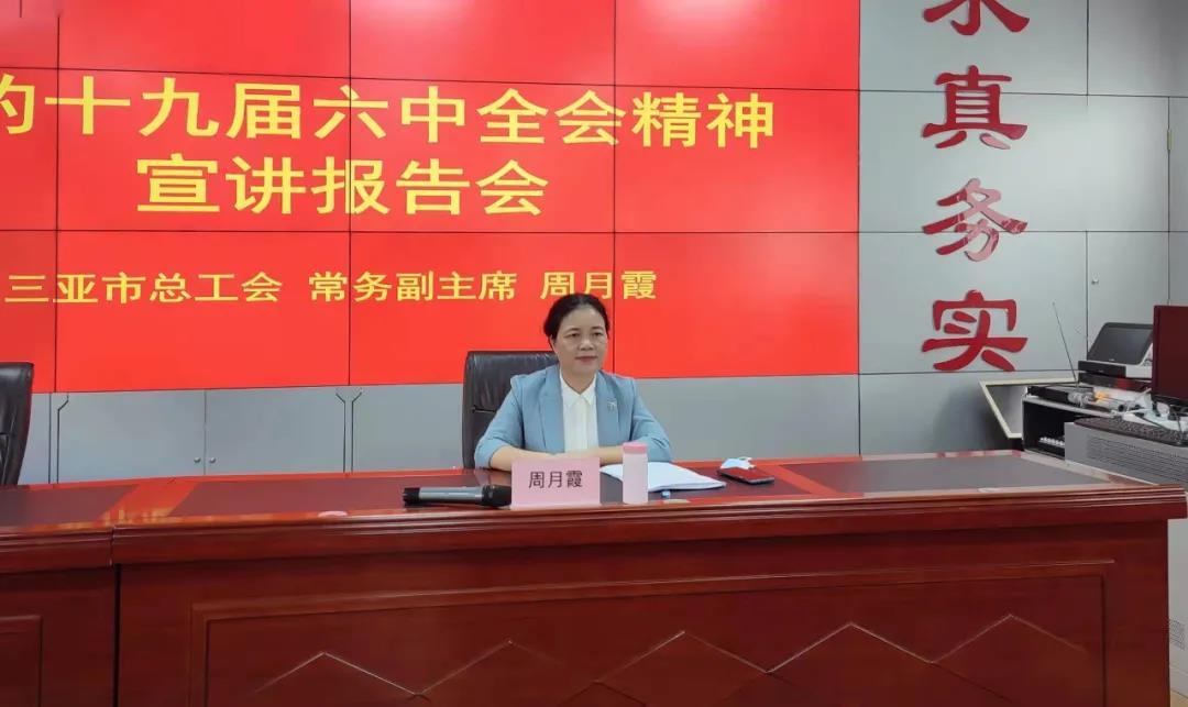 宣講會(huì)上,周月霞從黨的十九屆六中全會(huì)的重大意義、“兩個(gè)”確立、以“四個(gè)”歷史時(shí)期、“三次”飛躍、“十個(gè)”堅(jiān)持等方面,結(jié)合三亞市第八次黨代會(huì)精神和工會(huì)工作實(shí)際,對全會(huì)精神作了深入淺出的闡釋和全面系統(tǒng)的解讀。她表示,希望大家能夠通過學(xué)習(xí),更好地從黨的百年奮斗中看清楚過去我們?yōu)槭裁茨軌虺晒、弄明白未來我們怎樣才能繼續(xù)成功,激發(fā)奮進(jìn)新時(shí)代、邁好新征程、建功自貿(mào)港的斗志和豪情。