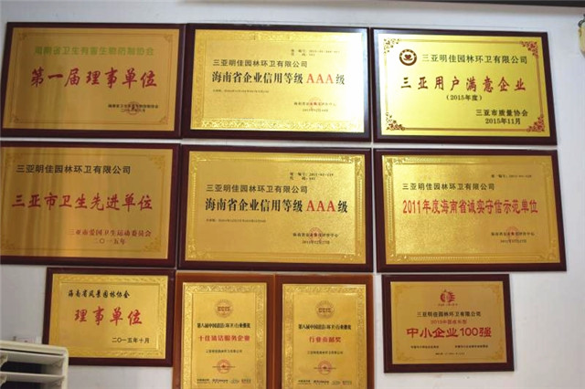 目前母公司連續(xù)五年被海南省企業(yè)信用評定中心評定為信用AAA等級單位,并榮獲中國清潔清洗行業(yè)國家一級資質(zhì)、城市環(huán)境衛(wèi)生經(jīng)營服務(wù)A級資質(zhì)、城市園林綠化三級資質(zhì),被中國清潔行業(yè)推選為國家三星級企業(yè)、十佳清潔服務(wù)企業(yè)、杰出貢獻企業(yè),并榮獲2016年中國清潔行業(yè)百強品牌,成為中國清潔行業(yè)常務(wù)理事單位、中國衛(wèi)生有害生物防制協(xié)會會員單位、中國城市環(huán)境衛(wèi)生協(xié)會會員單位、海南省衛(wèi)生協(xié)會理事單位、三亞市環(huán)境保護協(xié)會副會長單位,公司先后多次獲得國家、省、市獎勵和表彰40余次,成功在海南省股權(quán)交易中心掛牌,代碼:90777,并積極籌劃在新三板上市,已真正成為海南省環(huán)衛(wèi)行業(yè)的龍頭企業(yè)。